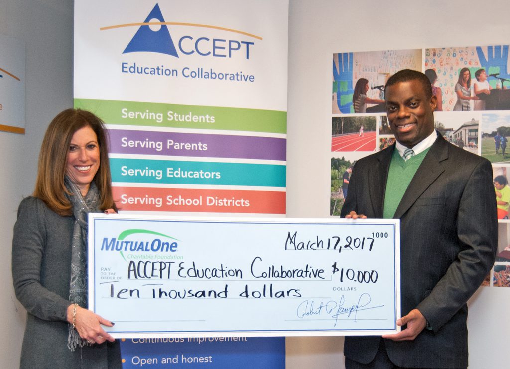 Steven M. Sousa, executive vice president and chief operating officer of MutualOne Bank and a MutualOne Charitable Foundation trustee, announced today that the Foundation has awarded $10,000 to ACCEPT Education Collaborative, a nonprofit educational organization that serves students with disabilities from a number of MetroWest school districts including Natick and Framingham.