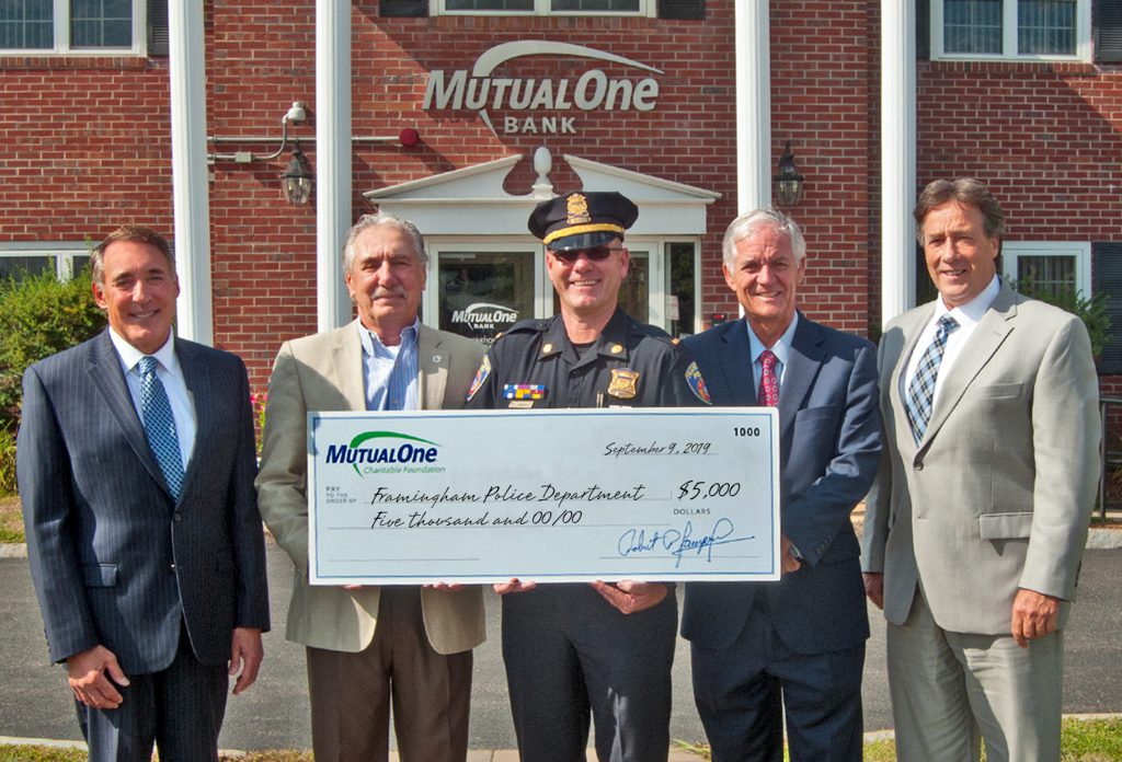 Mark R. Haranas, president and CEO of MutualOne Bank and a MutualOne Charitable Foundation trustee, announced today that the Foundation has awarded $5,000 to support Framingham’s third Gun Buy Back initiative. The event, which will be held September 14, is a combined effort of the Framingham Police Department, the office of Framingham Mayor Yvonne Spicer, the Framingham City Council, and the Middlesex Sheriff’s Department.