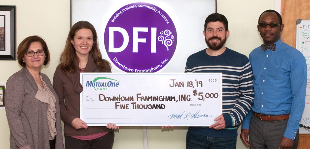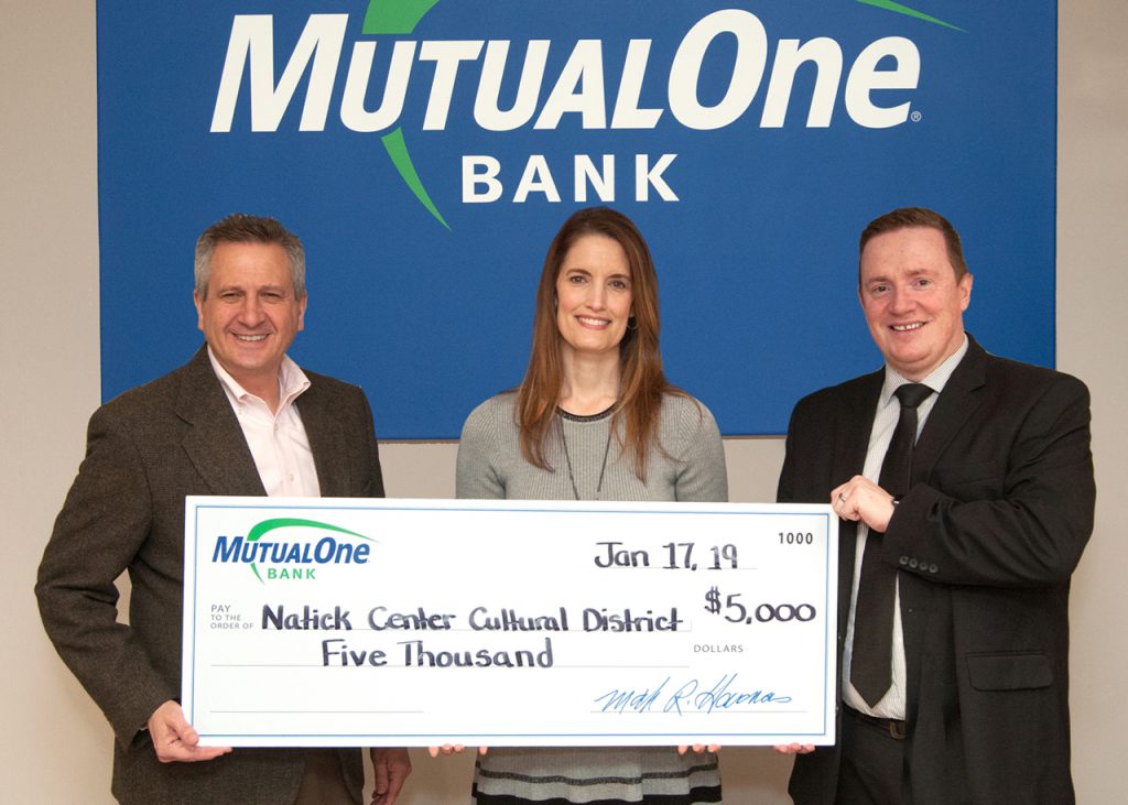 Steven M. Sousa, executive vice president and chief operating officer of MutualOne Bank, has announced a $5,000 donation to the Natick Center Cultural District. The award was made at the conclusion of the Bank’s 2018 Checking for Charity initiative, which promised a $10 donation to be shared equally by the Natick Center Cultural District and Downtown Framingham, Inc. for every new personal or business checking account opened during the year.